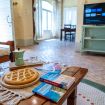 -L’appartamento Camomilla è più grande ha un ampio salone con vista sulla valle e sulla piscina, può ospitare fino a 7 persone. E’ presente il divertente calcio balilla, l’angolo SmatTV, la cucina con isola attrezzata per organizzare cene in compagnia o per accogliere il nostro chef italiano a domicilio che preparerà la vostra cena tipicamente Italiana o una bellissima Italian cooking class.