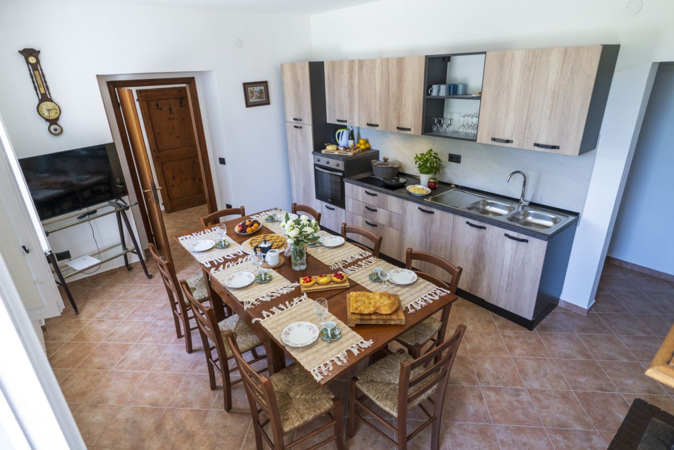 La casa con cucina attrezzata riesce ad ospitare 5 persone con le sue 2 camere da letto dov’è sempre possibile una culla baby 0-2 anni.